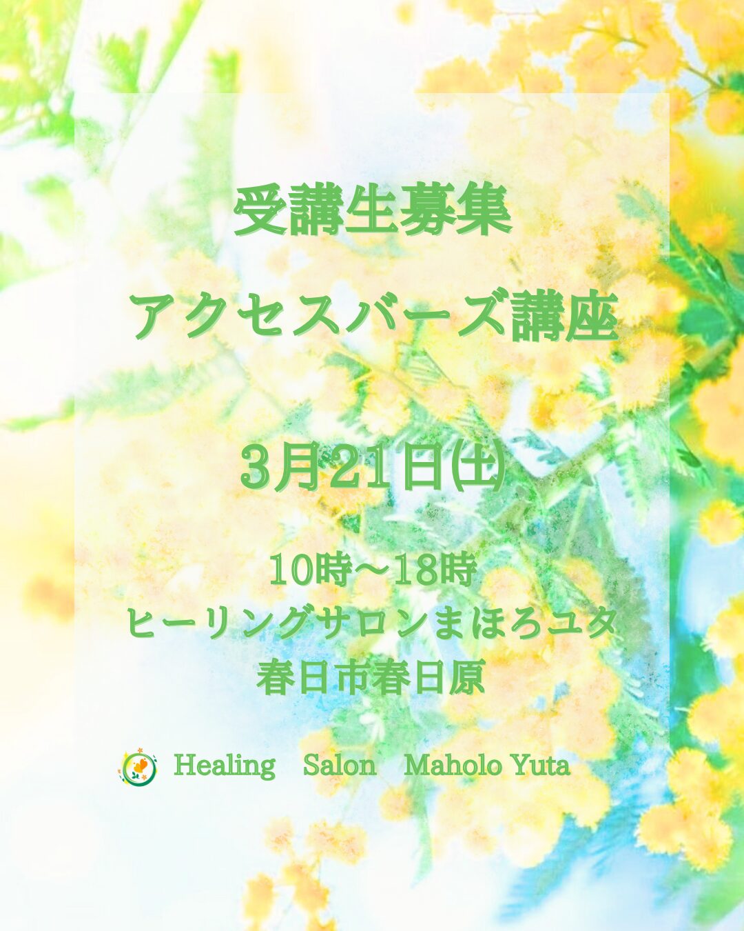 - 受講者募集中 3月21日㈯ アクセスバーズ講座開催します。◆アクセスバーズ 講座について◆ ◆アクセスバーズを施術できるプラクティショナーの資格が1日で取得できます ◆こんな方におすすめです ・自分を癒したい方 ・ 家 […]